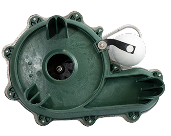 - Corrosion resistant engineered plastic vortex impeller to allow free passage of 2" spherical solids which prevents clogging and increases reliability.